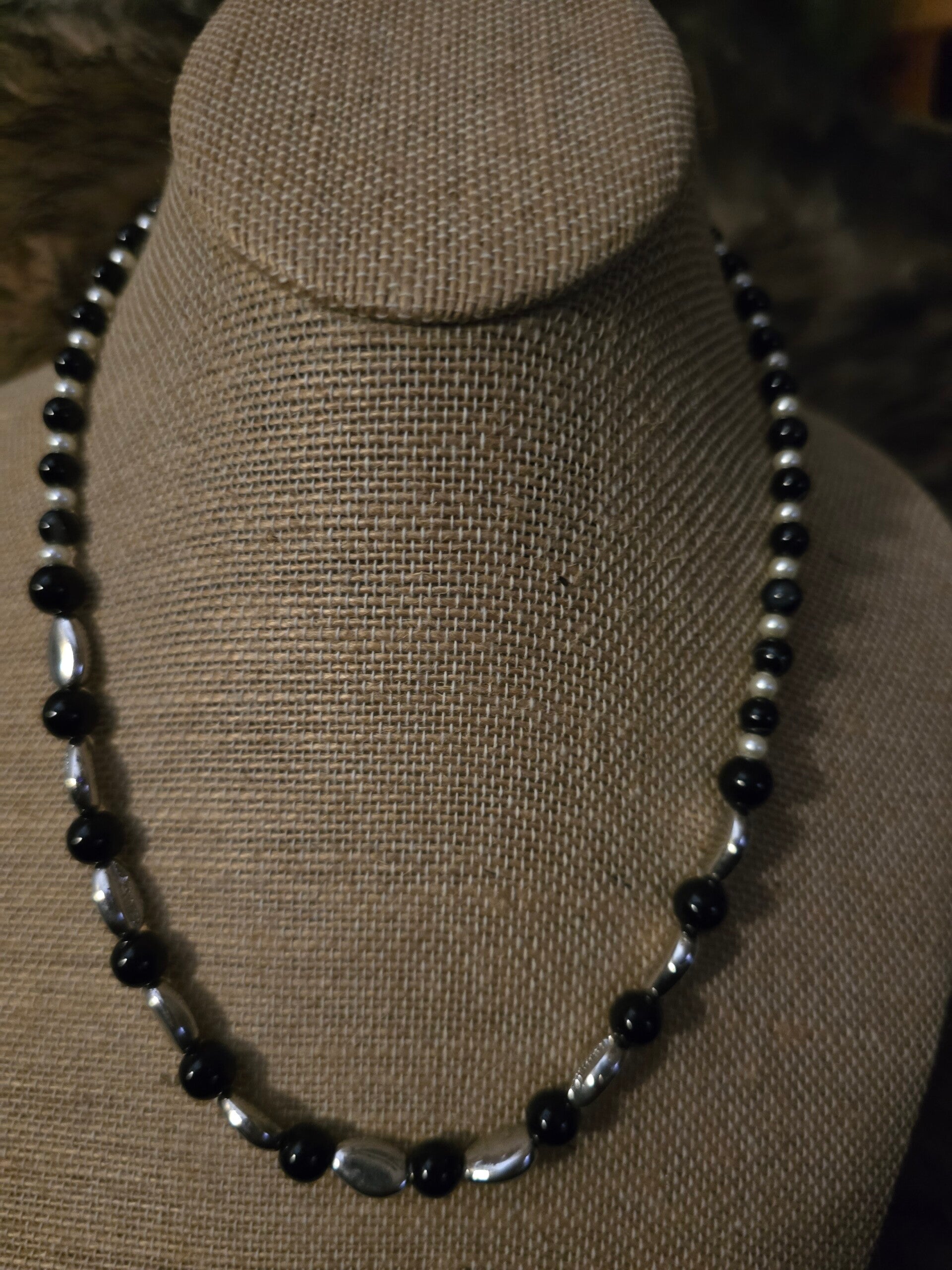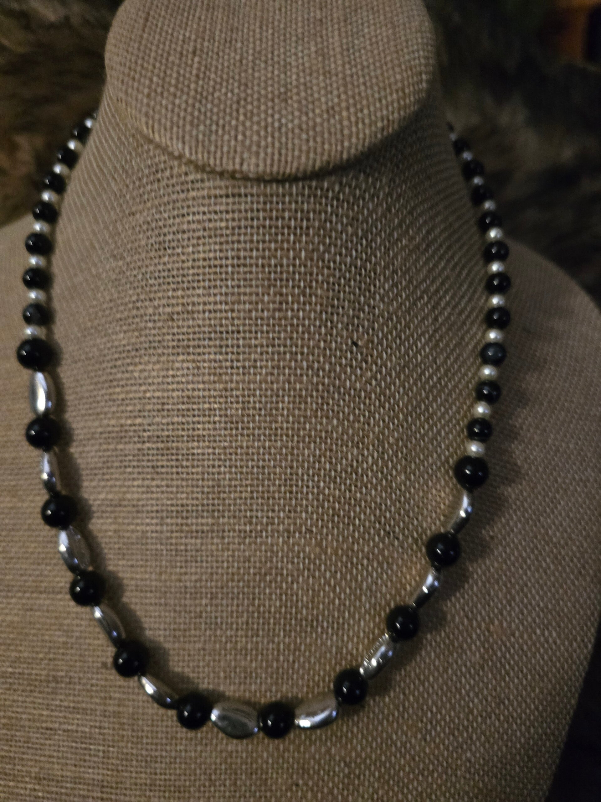Banded black jasper, black jasper, Freshwater Pearles, silver fish, starfish, turtles toggle clasp 20" necklace